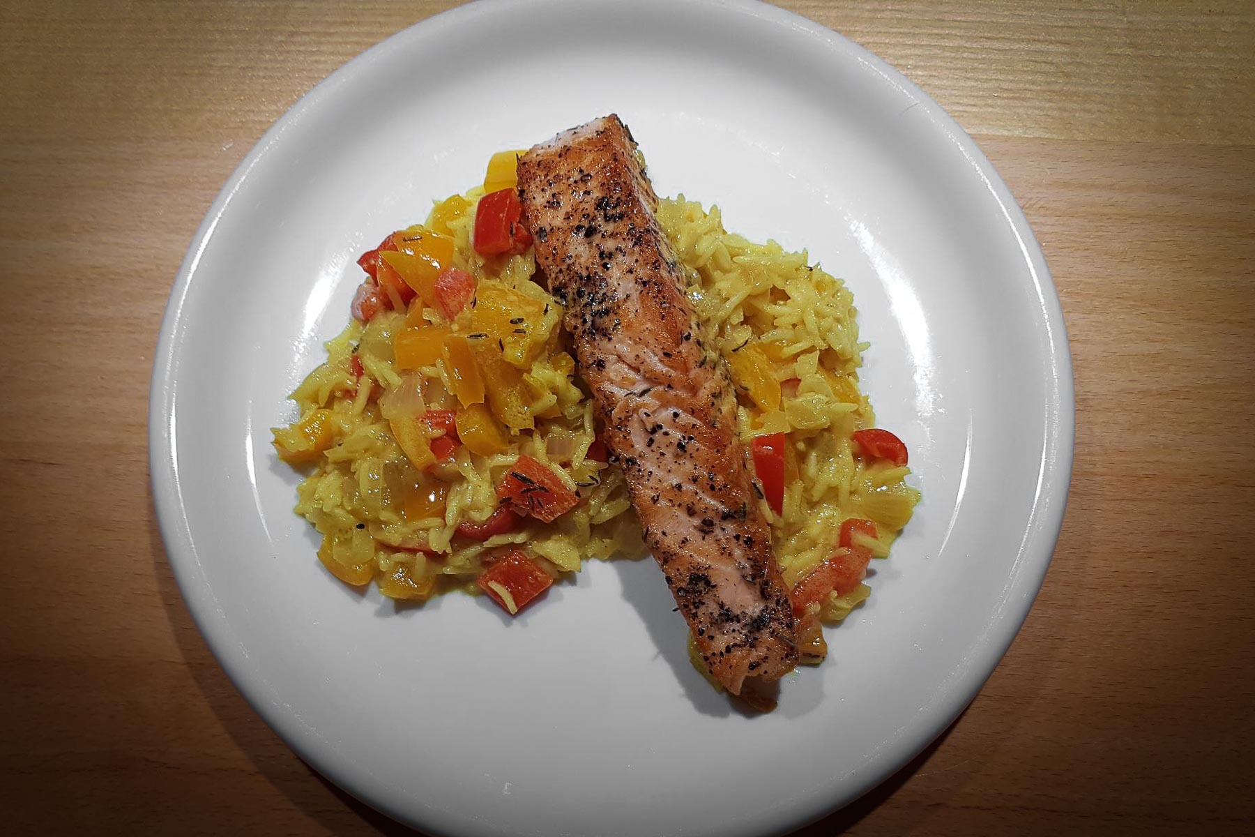 Scharfer Kurkuma-Reis mit Lachs (nach Jamaika-Art)
